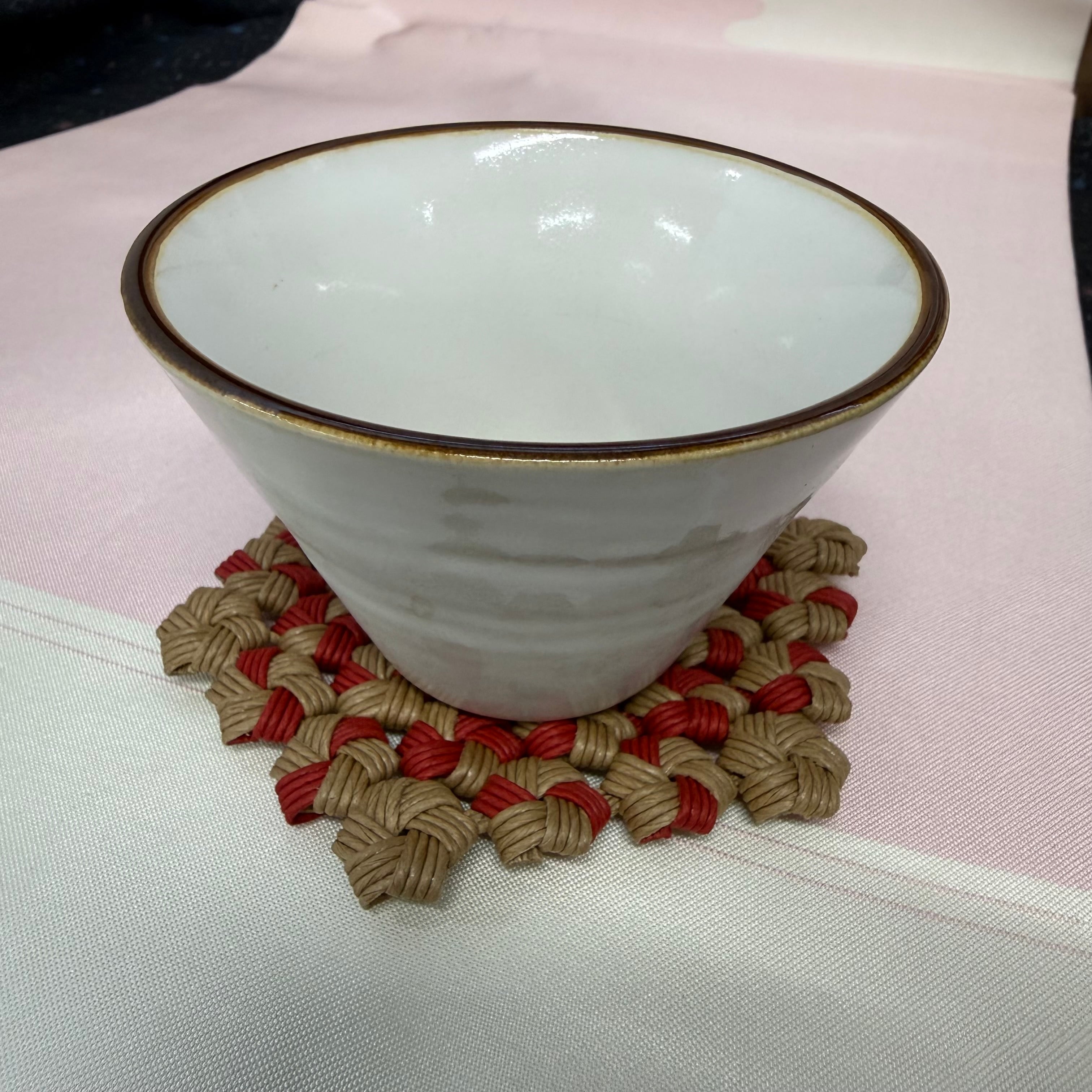 クラフトバンドを一つひとつ丁寧に編み込んだ、素朴で優しい表情のコースターです。
